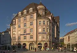 Das 1911 vom Architekten Hans Schnell im Stil des Jugendstils bzw. Neubarocks erbaute „Riegelehaus“ (auch „Riegele-Haus“, „Riegele-Block“ genannt) enthielt ursprünglich eine Bierhalle der Brauerei Riegele. Heute ist es ein geschütztes Baudenkmal.