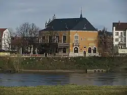 Am 27. Juli 1838 erwarb der Branntweinbrenner Karl Joseph Watzke die Schankwirtschaft einschließlich der Schank-Konzession. Er gab ihr den Namen Watzke's Garten-Restaurant mit Elbterrasse.[2] Das Restaurant blieb im Familienbesitz und wurde mehrfach erweitert.[3] Die Bevölkerungszahl im (nun) Arbeiterwohnviertel Pieschen war in den letzten Jahren des 19. Jahrhunderts stark gestiegen. Mit der Eingemeindung nach Dresden 1897,[4] wurde die alte Wirtschaft abgerissen, um den steigenden Besucherzahlen gerecht zu werden. Gustav Paul Watzke – Enkel des ersten Watzke-Wirts – errichtete nahe zum damaligen Ortskern Altpieschen gelegen auf Micktener Flur sein Ballhaus mit Biergarten, dem Restaurant im Parterre[5] und mit großem Ballsaal im Obergeschoss.[6] Die Adresse Meißner Straße 1 wurde dabei zu Mickten Kötzschenbroder Straße 1. Das Haus im Neo-Empire-Stil[7] erhielt den Namen Watzke’s Concert- und Balletablissement. Architekt war Benno Hübel, die Deckenmalerei im Saal stammt von Emil Schulz. Errichtet hat das Gebäude die Firma des Micktener Baumeisters Gustav Richard Martin (1863–1935) in fünf Monaten. Am 2. Oktober 1898 wurde es „schlüsselfertig“ übergeben.[8] Mit 770 Plätzen verfügte das Haus über einen der größten der 70 Festsäle der Stadt Dresden.[9] Nachdem Paul Watzke 1914 zum Militär eingezogen worden war, wurde das Haus zeitweise als Soldatenunterkunft genutzt.