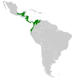 Die Art ist hauptsächlich im Flachland zu finden bis zu 1200 m Höhe in Mexiko, bis zu 1850 m in Costa Rica, 1800 m in Kolumbien und 1700 m in Venezuela. In Ecuador wurde sie sogar in Höhen von 2500 m Höhe gesichtet.