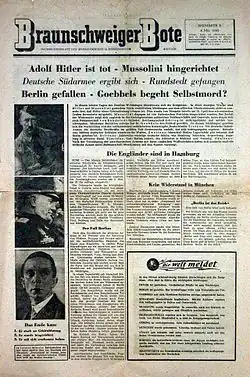 Die letzte von den Nationalsozialisten herausgebrachte Ausgabe ihres Parteiorgans „Braunschweiger Tageszeitung“ war am 10. April 1945 erschienen, zwei Tage vor dem Einmarsch der US-Truppen.