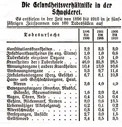 Erfolgreich war auch die praktische Zusammenarbeit zwischen Kasse und Gewerkschaft bei der Erforschung der Gesundheitsverhältnisse in der Schneiderei. So wies die Kasse um die Jahrhundertwende nach, dass im Bekleidungsgewerbe im Jahre 1896 48,3 Prozent aller Sterbefälle auf Lungen- und Kehlkopftuberkulose zurückzuführen waren und das Durchschnittsalter der Gestorbenen bei 39 Jahren lag. Die Kasse legte dazu Gutachten von Sanitätsrat Elben und dem bekannten Gewerbehygieniker Sommerfeld vor. Das führte zu heftigen Debatten im Deutschen Reichstag und hatte letztlich positive Auswirkungen auf die Tarifarbeit und die Gewerbeaufsicht.[6]