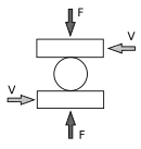 Das zu zerkleinernde Gut befindet sich zwischen zwei Arbeitslinien (Scherung) oder Arbeitsflächen (Reibung), die Anpressdruck ausüben und zugleich in gegensätzliche Richtungen bewegt werden.