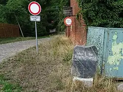 ![]() Ortseingang von Breddin-Abbau, die Landesgrenze kreuzt die Straße
