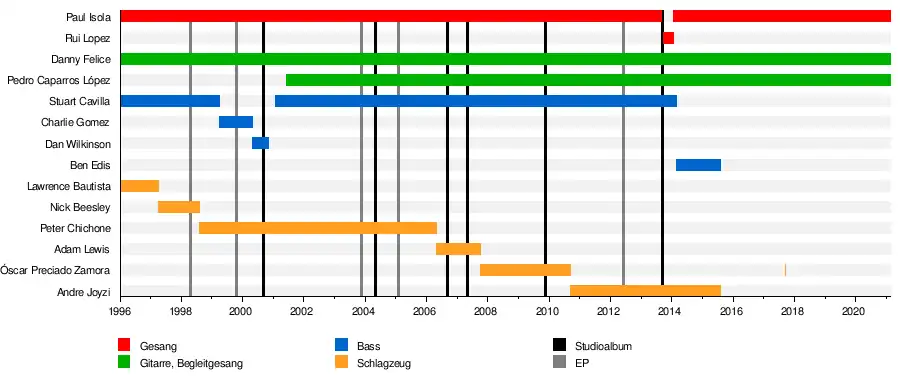 Im Jahr 2000 bekam die Band ihren ersten Plattenvertrag bei Albert Productions UK. Das nächste Jahr verbrachte die Band dann im Studio, um für ihr Debüt Songs aufzunehmen. Das Album erschien 2001 in England und im darauf folgenden Jahr in den meisten anderen Staaten. 2013 verließ Isola die Band und Rui Lopez wurde sein Nachfolger.[1][2]