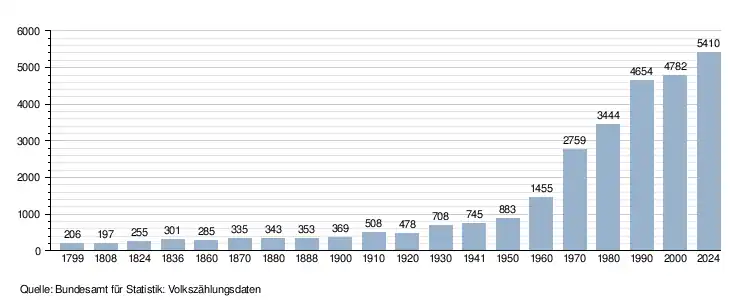 Einwohnerzahlen: Volkszählungsdaten[1][2] Daten ab 1930 inkl. des 1925 eingemeindeten Teils von Biogno