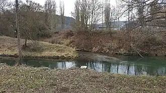 ![]() Mündung der Brehmbach von links in die untere Tauber (2016) | ||