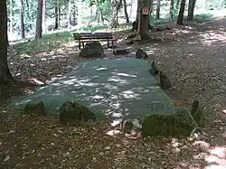 sein.[5][6] An der Felsplatte steht ein Besen bereit und es wird dem Wanderer der Hinweis gegeben, die Platte gegebenenfalls von Laub zu befreien.