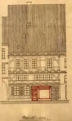 Um 1830 erfolgte ein Umbau des Erdgeschosses im Stil des Klassizismus. Ende des 19. Jahrhunderts bestand im Erdgeschoss ein von der Konditorei Robert Lorenz genutztes Ladengeschäft. Mittig im Haus war die Ladentür angeordnet, rechts außen die Haustür. Die links befindlichen zwei Fenster waren von einem mittig angeordneten Kämpfer sowie von einer die Fenster umfassenden Umrahmung gefasst. Das Ladenfenster sowie die Ladentür waren im Stil der Neogotik von seitlich angeordneten Pilastern mit korinthischen Kapitellen umgeben. Sowohl das Fenster als auch die Ladentür wiesen Sprossen auf, die nach oben als Spitzbögen gestaltet waren. Die Hauseingangstür wies in ihrem unteren Feld ebenfalls neogotische Elemente auf. Oberhalb des Ladens befand sich eine Bekrönung im Stil des Klassizismus, unter der sich der Namenszug des Ladeninhabers befand.