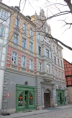 - ↑ Hans-Hartmut Schauer: Quedlinburg, Fachwerkstatt/Weltkulturerbe. Verlag Bauwesen, Berlin 1999, ISBN 3-345-00676-6, S. 147.
