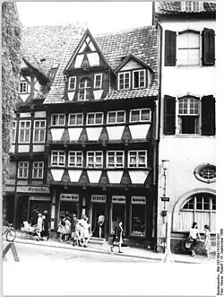 Während das Fachwerk der oberen Stockwerke seit der Bauzeit weitgehend unverändert ist, wurde das Erdgeschoss im 19. Jahrhundert stark verändert. Die hier ursprünglich bestehenden weit vorkragenden Kopfstreben verschwanden dabei. Im Erdgeschoss befand sich auf der linken Seite ein großes zweiflügeliges Tor, durch das man auf den Hof fahren konnte. Daneben befand sich die Tür zum Ladengeschäft. 1895 wurde dieser Bereich nochmals umgestaltet. Es entstanden zwei große Schaufenster und eine zweiflügelige Eingangstür. 1910 wurde die Tordurchfahrt verschlossen und zu einer Kammer umgebaut. Auch die Eingangstür zur Straße wurde von innen verschlossen. Die zur nördlichen Giebelseite zeigende Ladenfront erhielt nun ebenfalls ein Schaufenster.