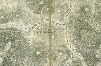 ![]() Ausschnitt aus der Haas’schen Karte von etwa 1800 mit Breitenbach