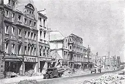 | 258 (alt) | 1880 errichtete Zimmermeister Wilh. Hahn ein viereinhalbgeschossiges Wohn- und Geschäftshaus. Die Fassade war zehnachsig und aufwendig im historisierenden Stil gestaltet. Die Fenster waren paarweise gefasst. In der Zeit zwischen 1880 und 1904 wurde das Haus geteilt, 1903/1904 fanden Umbauten statt. Eigentümer war 1914 und auch 1925 der Gymnasiallehrer Ch. Kohlrausch, 1938 und 1940 dann die Witwe Kohlrausch. Das Gebäude wurde während des Zweiten Weltkriegs zerstört. | ||