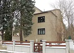 Das verputzte Wohnhaus entstand im Jahr 1930 nach einem Entwurf des Architekten Herbert Puls. Der gestaffelte kubische Baukörper präsentiert sich in sachlich-funktionaler Formensprache. An der Südwestseite des mit einem Flachdach gedeckten Hauses befindet sich ein halbrunder vorschwingender Erker, auf dessen Dach eine Terrasse angeordnet ist.