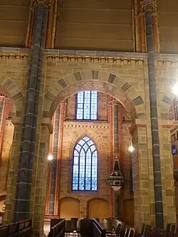 - ↑ Hinter dreifachen Vorlagen sind die Lisenen an den Pfeilern im Mittelschiff etwa 10 cm breiter als hinter einfachen Vorlagen.