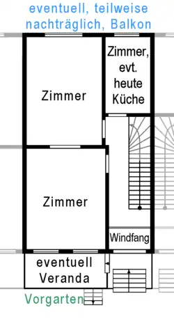 Bei den vor der Rezession der 1880er Jahre errichteten Häusern gab es typische Unterschiede zwischen den Fenstern der Straßenfront und denen der Rückseite. Zur Straße hin hatten die größeren Zimmer zwei Fenster. Die Fenster zur Straße hatten zumeist einen äußerlich geraden Sturz, hinter dem sich ein flacher Segmentbogen aus harten Wasserbauklinkern verbarg, und je eine Glasscheibe in jedem Flügel und im Oberlicht. Nach hinten hinaus hatten die größeren Zimmer oft nur ein Fenster, etwas breiter als das der kleineren Zimmer und die Fenster zur Straße und oft dreiflügelig. Die Fenster nach hinten hatten drei Glasscheiben je Flügel und in den Oberlichtern eine Scheibe über jedem Flügel. Die Segmentbögen der Fensterstürze waren dort nicht kaschiert. Die Rückseite hatte also nicht nur keinen Stuck, sondern auch an den Fenstern wurde gespart. Als um 1900 der nächste Bauboom kam, waren etwas größere Fensterscheiben kein Luxus mehr, einerseits waren Scheiben in ganzer Fensterbreite möglich, andererseits begann man, viele kleine Scheiben dekorativ zu finden. Bevor in den Jahren um die Jahrtausendwende fast alle Fenster mit Isolierverglasung ausgestattet wurden, waren die alten Unterschiede noch gut zu erkennen.