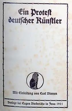 - ↑ Carl Vinnen (Hrsg.): Ein Protest deutscher Künstler. Eugen Diederichs, Jena 1911, S. 1.