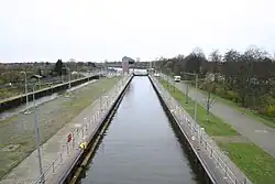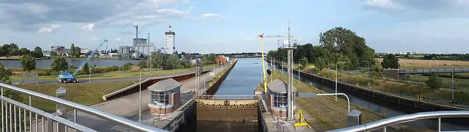 Groß- und Kleinschifffahrtsschleuse haben einen gemeinsamen Ober- und Unterkanal für die Zu- und Abfahrt. Die Einfahrtsbereiche sind durch Mittenleitwerke getrennt, um Wellenschlag bei der Einfahrt zu vermeiden und die Verkehre rechtzeitig zu separieren.