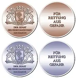 Die Bremische Rettungsmedaille wurde am 8. Mai 1973 durch den Bremer Senat für das Land Bremen per Anordnung wiedereingeführt, nachdem die bereits vorher gestiftete Bremische Rettungsmedaille in Bronze und Silber (gestiftet am 20. November 1908; Verliehen bis 6. April 1933) in der Zeit des Nationalsozialismus durch die Rettungsmedaille (1933) ersetzt worden war.[1] Die Bremische Rettungsmedaille ist damit eine staatliche Anerkennung für Rettungstaten auf dem Landesgebiet von Bremen.
