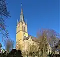 Die römisch-katholische Pfarrkirche St. Evergislus[2] („Dom des Vorgebirges“, Neogotik) am Ploon wurde 1895/96 an der Stelle einer Kirche aus dem 10. Jahrhundert nach Plänen der Architekten Gerhard Franz Langenberg und Hermann Ritzefeld errichtet. Zwei der drei Glocken stammen von dem wallonischen Glockengießer Martin Legros (1714–1789).[3] Die Glocken besitzen eine Beier-Anlage.[4] |