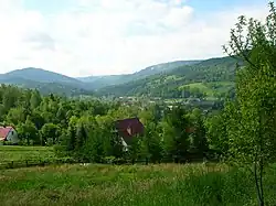 Nordöstlich erstreckt sich der Bergrücken Błatnia (917 m) – Stołów (1035 m) – Trzy Kopce (1082 m) und östlich anschließend mit Przełęcz Karkoszczonka (729 m) – Beskid Węgierski (929 m) – Przełęcz Salmopolska (934 m). Der höchste Punkt des Orts ist der Gipfel des Trzy Kopce mit 1082 m.