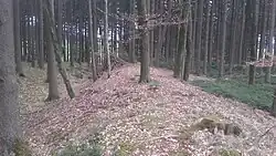 Das Tor lag den Geländespuren nach im Süden. Die maximale Wallhöhe beträgt (gemessen von der Grabensohle) ca. 2,5 Meter. Der Wall wird von einigen neuzeitlichen Durchstichen unterbrochen.