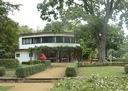 Der Pavillon mit dem Rosengarten, heute ein markanter Punkt des Parks, wurde 1931 nach Plänen von Eugen Kaufmann (1892–1984) als Teil des Projekts Neues Frankfurt errichtet.[4] Weitere bemerkenswerte Orte im Park sind das Kriegsopferdenkmal und das Denkmal für die 1938 zerstörte Rödelheimer Synagoge. Heute ist der Park mit seinem alten Baumbestand ein Erholungsort. Eine Besonderheit ist der etwa 260 Jahre alte Ginkgo-Baum, der auch „Goethe-Ginkgo“ genannt wird, weil ihn der Dichter Johann Wolfgang von Goethe besonders geschätzt haben soll.[5] Im Jahr 2007 wurde mit der Sanierung des Parks begonnen, bei der einige Bereiche umgestaltet wurden, um die ursprüngliche Bepflanzung und Wegführung wiederherzustellen. Im Park steht eine Stieleiche mit einem Brusthöhenumfang von 6,84 m (2015).[6] Nähere Informationen über die Baumbestände (Art und Pflanzdatum) gibt es online im Baumkataster Frankfurt.[7]