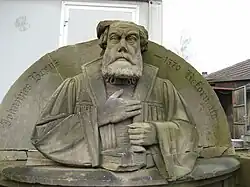 - ↑ Zitat: Die bei den Bauarbeiten in der Baugrube ausgegrabene Brenz-Büste des Vorgängerbaus, Juni 2008. Foto: Daniel Stihler (StadtA SHA Server Häuserlexikon) Seite 5 von 18. aus Archivierte Kopie ( des vom 20. Februar 2014 im Internet Archive) Info: Der Archivlink wurde automatisch eingesetzt und noch nicht geprüft. Bitte prüfe Original- und Archivlink gemäß Anleitung und entferne dann diesen Hinweis.