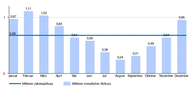 Der modellierte monatliche mittlere Abfluss (MQ) der Bressonne in m³/s[2]