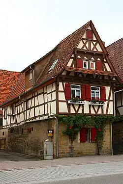 Das schmale Haus steht mit dem Westgiebel zur Straße und befindet sich gegenüber dem Amthof. Über dem massiven Erdgeschoss erhebt sich ein Fachwerkstock und zwei Dachstöcke, die überkragen. Die unteren Fenster wurden in neuerer Zeit vergrößert und der untere Dachstock wurde zur Wohnung ausgebaut. Als Zierformen sehen wir den Fränkischen Mann und Andreaskreuze, ebenso sind kurze Fußstreben und Balkenköpfe am Giebel zu sehen. Das Klebdach wurde später hinzugefügt.