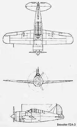 Ihr folgte die Version F2A-3 nach. Der Rumpf wurde um 25 Zentimeter verlängert und es wurden weitere Kraftstofftanks eingebaut. Cockpit sowie Treibstofftanks wurden gepanzert und die Kanzel wurde verändert, um die Sicht des Piloten zu verbessern. Aufgrund dieser Änderungen nahm das Gewicht der Maschine zu und führte zu wesentlich verschlechterten Flugleistungen, lediglich die Reichweite war stark verbessert worden. Bis April 1942 waren alle F2A der US Navy in den Kampfstaffeln durch Grumman F4F ersetzt und an das US Marine Corps abgegeben worden. Trainingsstaffeln in Miami flogen die restlichen F2A noch bis 1944/45, bevor diese verschrottet wurden.