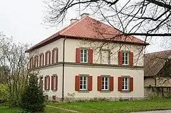 - Kirchplatz 4: Ehemaliges Schulhaus, zweigeschossiger, verputzter Walmdachbau, 1837; Ummauerung