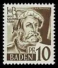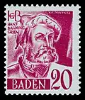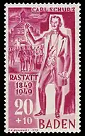100. Jahrestag der Badischen Revolution | 10+5 Pf. | 24. August 1949 | 31. März 1950 | 400.000 | Jonynas | 50 |