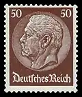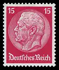 - ↑ Diese Serie unterscheidet sich von der Serie III (1933–1936) hauptsächlich durch das verwendete Wasserzeichen, die Farbunterschiede sind mit Ausnahme des Wertes zu 50 Pfennig nur gering. Die III. Ausgabe umfasst dann noch weitere Werte.