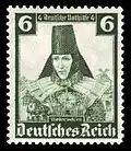 - Bild: Eine bearbeitete Abbildung der genannten Marke. Das Verhältnis der Größe der Briefmarken zueinander ist in diesem Artikel annähernd maßstabsgerecht dargestellt. Sollten keine Marken abgebildet sein, liegt es daran, dass das Urheberrecht des Künstlers noch nicht erloschen ist.