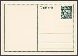 - ↑ Zusätzlich wurde in gleicher Zeichnung, jedoch mit der Wertangabe ‚12 g‘ und der Landesbezeichnung Deutsches Reich Land Österreich eine Marke im Buchdruckverfahren vorbereitet aber nicht ausgegeben, außerdem ist das Motiv bei gleicher Größe der Briefmarke etwas kleiner, somit etwas breiterer Rand.