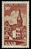 - Wert: Der Frankaturwert der einzelnen Marke in Saar-Franken. Ein „+“ bedeutet, dass es sich um eine Zuschlagsmarke handelt (= Frankaturwert + Spende).