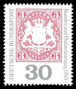- ↑ Es gab allerdings wenige Ausnahmen; die Dauermarkenserien Deutsche Bauwerke aus zwölf Jahrhunderten, Brandenburger Tor und die Sondermarken zu Ehren der Olympischen Sommerspiele 1968 in der Stadt Mexiko waren unbeschränkt gültig. Diese Briefmarken wurden vor 1969 ausgegeben.