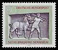 - Bild: Eine bearbeitete Abbildung der genannten Marke. Das Verhältnis der Größe der Briefmarken zueinander ist in diesem Artikel annähernd maßstabsgerecht dargestellt. Sollten keine Marken abgebildet sein, liegt es daran, dass das Urheberrecht des Künstlers noch nicht erloschen ist.