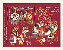 25 Jahre Verband der Philatelisten der Ukraine. Erste Nationale Briefmarkenausstellung in Iwano-Frankiwsk[18][19] | 2,00 Karbowanez |