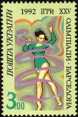 Spiele der XXV. Olympiade in Barcelona. Turnerin mit Schleife[10][11] | 3,00 Karbowanez |