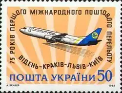 75. Jahrestag des ersten internationalen Postfluges in die Ukraine | 35 Karbowanez |