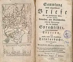 - Benedikt Georg Schäfler: Sammlung wohl eingerichteter Briefe für alle gewöhnlichen Fälle. Rieger, Augsburg 1780, OCLC 165740513, urn:nbn:de:bvb:12-bsb10404472-6.
