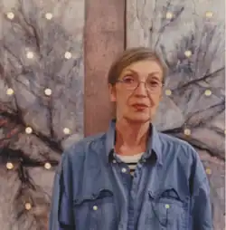 - Konstruktivismus: Die nach 1977 entstandenen Bilder (Japan-Serie), die zunächst wie Ausschnitte von Architekturen, von klar gegliederten Fassadenteilen wirken, bezeugen, wie relativ hermetische, konstruktivistische Prinzipien, eine "schwierige Rektangularität" in System umgewandelt werden können.[3] Die Historikerin Hertha Schober sprach von einem "beseeelten Konstruktivismus": "Geschlossene Flächen, geöffnete Balkenreihen, blauer Himmel – verschlossen, ausgesperrt sein, sich öffnen, Bereitschaft zur Kommunikation […]."[4]