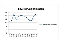 Die Entwicklung der Einwohnerzahl von Brimingen, die Werte von 1871 bis 1987 beruhen auf Volkszählungen:[6]