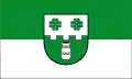 Hissflagge: „Die Flagge ist grün-weiß geteilt mit dem aufgelegten Wappen in der Mitte.“ |