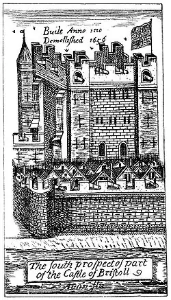 Die erste detaillierte Beschreibung der Burg stammt von 1480.[9] Um 1540, als der Geschichtswissenschaftler John Leland Bristol Castle besuchte, zeigte die Burg schon Zeichen von Vernachlässigung. Sie hatte „zwei Höfe und im Nordwestteil des äußeren Hofes ist ein großer Donjon mit einem Kerker, von dem man sagt, er sei aus Steinen gebaut worden, die der rote Earl of Gloucester aus Caen in der Normandie gebracht habe. Im anderen Hof befinden sich eine attraktive Kirche und viele Wohngebäude mit einem großen Tor an der Südseite, einer steinernen Brücke und drei Wällen am linken Ufer, das zur Mündung des Frome führt. Viele Türme stehen noch in beiden Höfen, aber sie sind alle stark einsturzgefährdet.“[10] Im 16. Jahrhundert wurde die Burg nicht mehr genutzt, aber die Stadtverwaltung hatte keinerlei Kontrolle über den königlichen Besitz und der Bereich wurde zu einem Unterschlupf für Gesetzesbrecher. 1630 kaufte die Stadt die Burg, und als der englische Bürgerkrieg ausbrach, schlug sich die Stadt auf die Seite der Parlamentaristen und ließ die Burg teilweise reparieren. Aber royalistische Truppen besetzten Bristol und anschließend ordnete Oliver Cromwell die Schleifung der Burg an.[11]