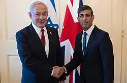Innerhalb der britischen Politik vertreten vor allem die Konservativen pro-israelische Positionen (so war Winston Churchill ein Unterstützer der israelischen Staatsgründung)[10], während die Labour Party zunehmend kritisch hinsichtlich der israelischen Politik gegenüber den Palästinensern geworden ist.[11] Im Juni 2019 führten die Royal Air Force und die israelische Luftwaffe in der Amtszeit von Boris Johnson ihre erste gemeinsame Übung durch.[15] Im Dezember 2020 unterzeichneten die Länder ein Abkommen über militärische Zusammenarbeit, dessen wesentliche Details geheim sind. Durch den Krieg in Israel und Gaza 2023´verschlechterten sich die britisch-israelischen Beziehung unter der Labour-Regierung von Keir Starmer. So verkündete seine Regierung 2024, sich an den Haftbefehl des ICC gegenüber Benjamin Netanjahu wegen Kriegsverbrechen zu halten und begann ein neues Waffenembargo gegen das Land zu diskutieren[16], welches in Umfragen von einer Mehrheit der Briten unterstützt wurde.[17]