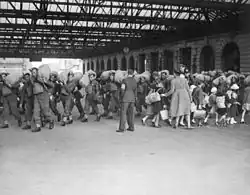 Die verlustreiche Evakuierung der britischen und französischen Streitkräfte (→ Operation Dynamo) begann am 26. Mai 1940 unter Luftdeckung durch die Royal Air Force. In den folgenden zehn Tagen wurden 338.226 französische und britische Soldaten nach Großbritannien evakuiert. Von der BEF wurde der größte Teil des Personals nach Großbritannien zurückgebracht, aber viele Fahrzeuge, Panzer, Geschütze, Munition und schweres Gerät der Armee sowie die Bodenausrüstung und Vorräte der Royal Air Force blieben in Frankreich zurück.[12] Weitere 215.000 Mann wurden im Juni im Rahmen der besser organisierten Operation Aerial aus den Häfen südlich des Kanals evakuiert.[13]