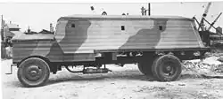 Ein gewisses Maß an Mobilität wurde durch Fahrräder, Motorräder, private Fahrzeuge und Pferde gewährleistet. Einige wenige Einheiten wurden mit gepanzerten Fahrzeugen ausgestattet, von denen einige der Standardausführung entsprachen, aber viele wurden vor Ort aus handelsüblichen Fahrzeugen durch das Anbringen von Stahlplatten improvisiert.[26] Bis 1941 wurde die Home Guard mit „Sub-Artillerie“ ausgestattet; der Begriff steht für eilig produzierte und unkonventionelle Waffen zur Panzerabwehr oder zur Unterstützung der Infanterie, darunter der „Blacker Bombard“ (ein Panzerabwehr-Zapfenmörser), der „Northover Projector“ (ein Schwarzpulver-Mörser) und die „Smith Gun“ (ein kleines Artilleriegeschütz, das von einem privaten Kraftfahrzeug gezogen werden konnte).[27]