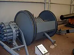 Große Betonzylinder wurden aus Abschnitten von Abwasserrohren mit einem Durchmesser von 91 bis 122 cm hergestellt. Die mit Beton gefüllten Rohrstücke hatten typischerweise eine Höhe von 1,2 bis 1,5 m.[64]